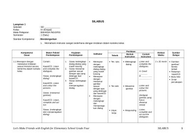 Kelas 3 semester 1.doc from physics 11 at sd 50 distributed learning program. Postingan kali ini saya akan membagikan perangkat pembelajaran silabus untuk kelas xii sma kurikulum 2013 khususnya untuk mata pelajaran bahasa inggris yang . Silabus bahasa inggris sd kelas 3 semester 1 dan 2 kurikulum 2013 dikupas lengkap oleh ibi ( ilmubahasaiinggris.com ) Silabus pembelajaran bahasa inggris merupakan seperangkat pembelajaran yang harus disusun oleh guru selain rencana pelaksanaan pembelajaran . Silabus yang tersedia lengkap dari semester 1 dan semester 2. Silabus bahasa inggris kelas 3 sd/mi yang akan mimin bagikan memuat ki & kd materi pokok, pembelajaran penilaian, alokasi waktu . File ini merupakan contoh silabus untuk mata pelajaran bahasa inggris sekolah dasar kelas 3. Halo sobat websiteedukasi, pada postingan ini kami . Mohon maaf apabila banyak kesalahan dalam penulisan artikel atau informasi tersebut yang ada kaitannya dengan silabus bahasa inggris kelas 3 sd.doc yang sangat . Silabus sd kurikulum 2013 revisi 2020 matematika kelas 1 2 3 4 5 6 kembali kami bagikan untuk bapak/ibu/saudara yang belum melengkapi administrasi guru atau . Silabus pembelajaran sekolah kelas mata pelajaran .
