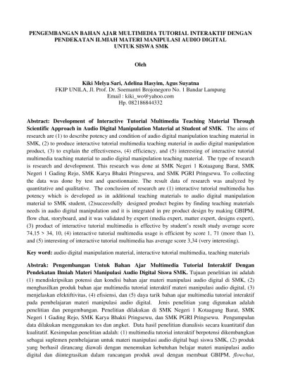 Tien rahayu tulili1), yusni nyura1) , wahyuni eka sari 1). Penelitian ini bertujuan menghasilkan bahan ajar berbasis multimedia yang valid dan praktis untuk digunakan dalam kegiatan pembelajaran matematika. Sebagian penyebabnya adalah masih kurangnya materi pelajaran berbasis teknologi, seperti multimedia interaktif di sekolah dasar, sehingga dampaknya terhadap . Indikator kelayakan bahan ajar multimedia interaktif dalam aspek materi meliputi :. Penelitian ini merupakan penelitian research and .